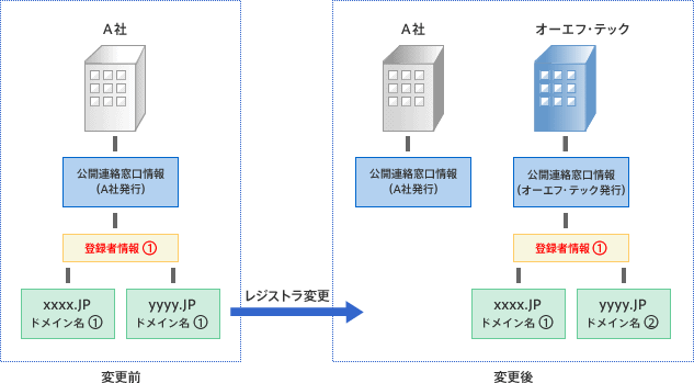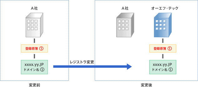 レジストラ変更INの例:A社→エクストランスCS 属性型ドメインの場合