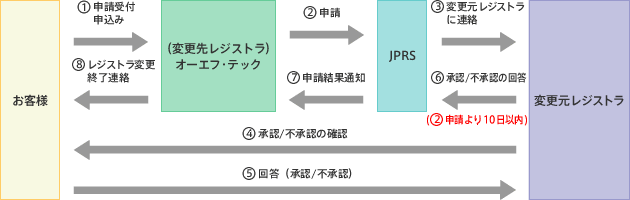 弊社にてレジストリ に対し、レジストラ変更申請を行います。