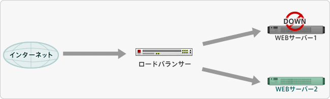 WEBサーバーを複数台運用している状態で1台のWEBサーバーが障害等でダウンした場合、ロードバランサー経由したアクセスはダウンしたWEBサーバーではなく、動作している他サーバーへのみアクセスさせることが可能で、WEBサイトへのアクセス不可状態を最小限にとどめることができます。WEBサーバーの冗長化対策としてロードバランサーは最適です。