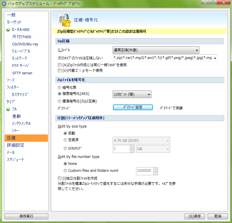 ※1 標準形式、ZIP64対応(ファイル容量2GB以上圧縮可能。ただし、WinodwsOSバージョンによってはZIP64対応不可)