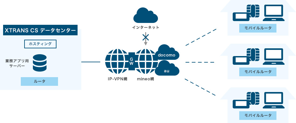 モバイルデータでのアクセスインターネットから完全分離サーバー移設を行わない提供サービス